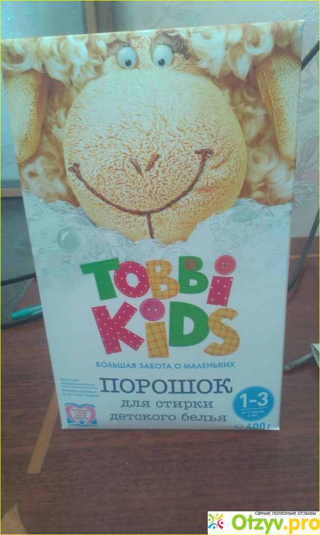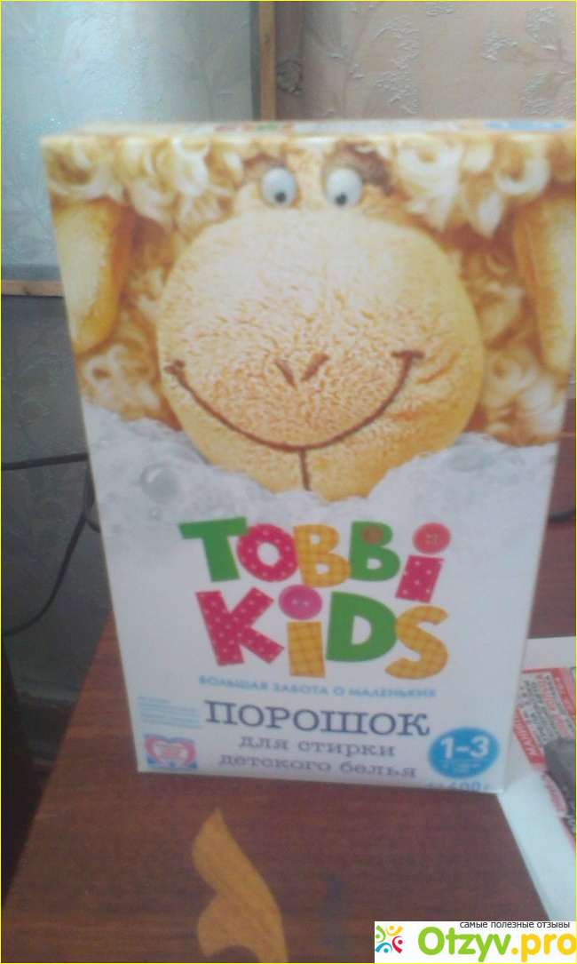 Стиральный порошок " Tobbi kids" необходимо засыпать прямо в барабан стиральной машинки, а не в отсек для стирального порошка- так как он имеет свойство сильно комковаться, это я считаю минусом.