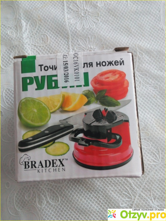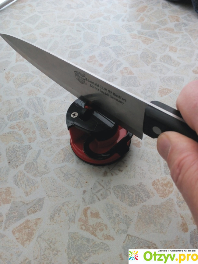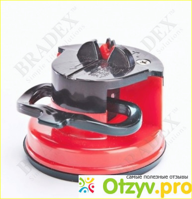 Я приобрела точилку Bradex «Рубин» в интернет-магазине бытовой техники, затратив всего 250 рублей. Подруга была очень рада такому презенту, мы сразу решили опробовать ее в действии. В аккуратной коробочке прилагалась инструкция на русском языке. Разместили точилку на стеклянном обеденном столе, на таком материале присоска сработала отлично. Во время заточки лезвие ножа необходимо плавно провести вдоль прорези в выступе на крышке точилки. В это время автоматически обеспечивается оптимальный для заточки угол. Мы были в восторге от результата - на энтузиазме переточили все ножи в доме.