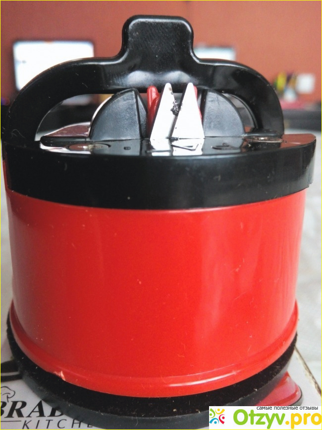 1. она очень компактная: не занимает много места даже на самой малогабаритной кухне, диаметр основания точилки: 6,5 см, высота: 5 см, также имеет небольшой вес.
