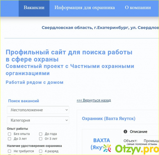 Общее впечатление: Можно найти работу в охране в Екатеринбурге, в том числе вахтовым методом