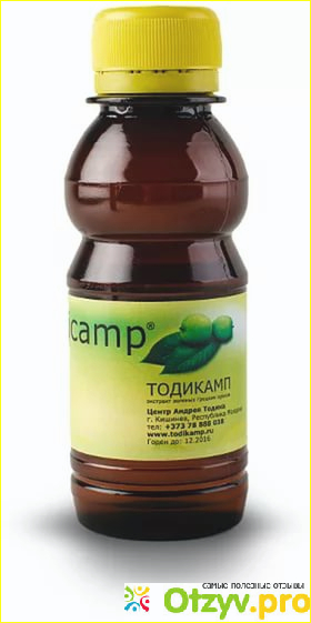 "Тодикамп" - это настойка на основе грецких орехов и керосина, которая применяется наружно и внутренне. Честно говоря, принятие настойки на основе керосина во внутрь меня весьма напрягло.