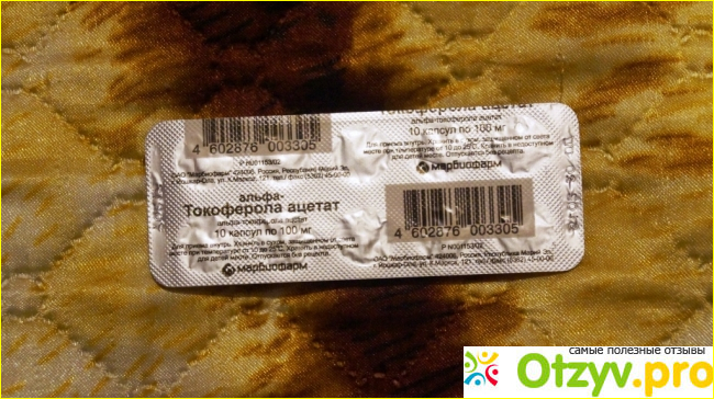 Все мы знаем, что для поддержания организма нужны витамины. Особенно это актуально при сильных физических и моральных перегрузках, после которых, как правило, мы чувствуем упадок сил, становимся нервными и раздражительными. В таких случаях на помощь, лично членам нашей семьи, приходит замечательное средство: Токоферола ацетат "Марбиофарм». Продается оно в любой аптеке и стоит совсем недорого. Это обыкновенный витамин «Е», который уже давно прославился, как витамин молодости. Продается он в упаковке типа «блистер» в виде полоски из фольги, в которой находятся 10 желатиновых капсул малинового цвета по 100 грамм и в которых находится данный витамин. Принимать данное средство надо один раз в сутки по одной капсуле, курс приема данного средства составляет один месяц. Стоимость одной такой упаковки составляет 15 рублей, на месяц вам надо три таких упаковки, что составит всего 45 рублей.