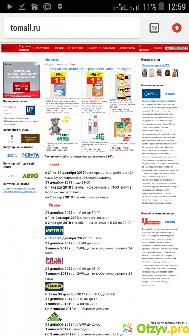 В обращении он очень прост. Не нужна ни какая регистрация, просто набрал tomall.ru и все. Все сразу доступно и все можно смотреть.. Все магазины расположены в списке с адресами. В них можно выбрать товары и отметить галочкой что интересно или что требуется, Так можно набрать и нужный список покупок, потому что там есть и продуктовые магазины такие как лента, пятерочка, карусель и т. д. Можно так же увидеть и с какого и по какое число действует акция или скидка.