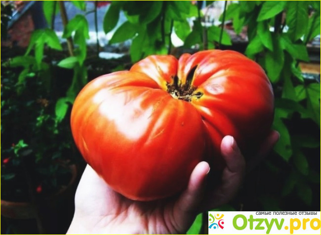 Плоды по форме немного напоминают сердце, а их поверхность слегка ребристая с глянцевым отливом. В среднем, один такой помидор весит пятьсот граммов, это немало. Если томат еще не созрел, он будет привычного нам зеленого цвета, а в районе плодоножки оттенок будет несколько темнее. После созревания цвет уже будет ярко-красным.