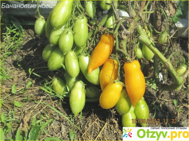 Дело в том, что всё лето я работала и ездила только на выходные на дачу. Но вот именно этот сорт дал больше всех урожая. При том, что я за ним не ухаживала практически. Даже на грядке смотрится очень красиво, как бы украшаю огород. Единственный уход, который нужен сорту "Банановые ноги". Это обильный и своевременный полив, и подкормка. А также, эти томаты нуждаются в обязательной подвязки кустов. Иначе все кусты попадают. Так как кисти достаточно тяжелые и на кусту бывают до нескольких штук. Хочу еще раз заметить, что этот сорт не привередлив в уходе. Благодаря этому, сорт очень ценится, особенно в среднем Поволжье. Я очень советую этот сорт к приобретению, особенно для средней полосы. Спасибо большое, что прочитали до конца. Всего вам самого наилучшего, до свидания! Всем пока, пока.