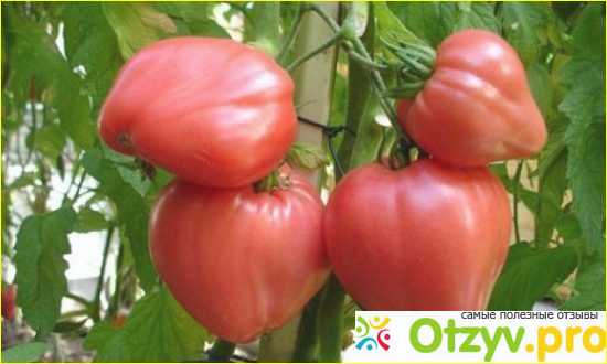 Многих ещё и интересует какой он будет высоты? Так вот если говорить о тепличных условиях, так он может вырасти полтора метра и больше, а вот на грядке он всё-таки имеет меньше рост. Но и ещё следует отметить и то, что первая кисть, которая будет потом давать плоды, начинает формироваться над 8 - 9 листом, но в результате это будет 5 - 6 плодов и все они будут крупного размера и достаточно вкусными. Многим нравится не только их вкус, но и форма, ведь она напоминает сердце, между собой практически одинаковые, а цвет у них приятный алый. Конечно же размер плода - это понятие растяжимое, так вот если быть более конкретным, так один томат может быть в размерах до 800 грамм, но это самые первые, а вот другие весят по 400 - 500 грамм.