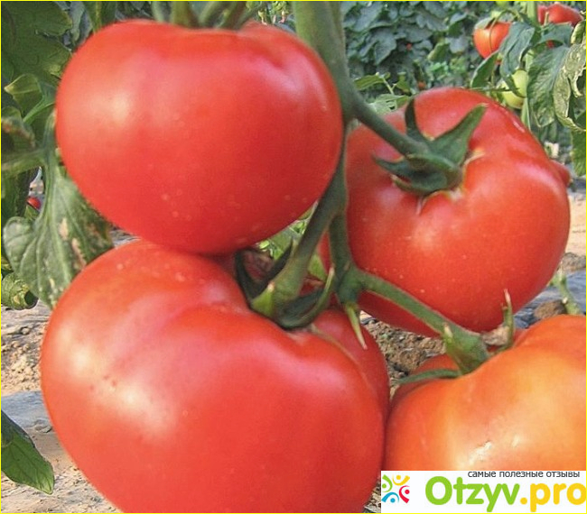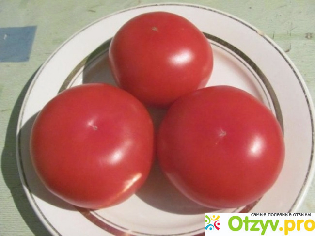 Размер плодов. Высокий крепкий куст дает крупные плоды. Читала информацию о килограммовых плодах. На практике такой величины не встречала. Помидоры действительно порадовали величиной. Средний вес был 500 грамм. Отдельные весили немного больше. Томаты правильной круглой формы. Созревать начинают снизу. Приобретают равномерную окраску. Признаком полной зрелости является исчезновение зеленого ободка вокруг плодоножки. Можно срывать раньше, на вкусовые качества особо не отражается. Хранятся помидоры хорошо. Если вы приезжаете на участок не каждый день, то лучше сорвать плоды заранее. Стоит передержать плод на стебле, получите лопнувшие помидоры. Зачастую такую картину приходилось наблюдать после дождя. Как только проходил дождь, через два дня зрелые томаты, которые не собрали, давали трещины.