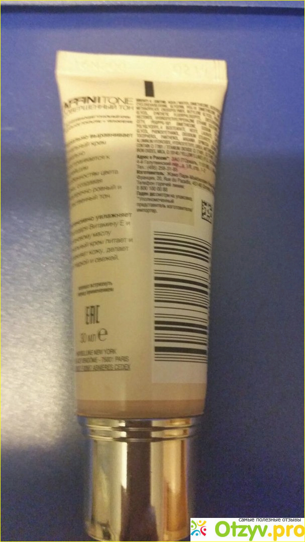Крем достаточно жидкий по консистенции, без запаха. Наносила я сей тональник, на предварительно подготовленную морду лица сначала пальцами, а затем вбивала, купленным по случаю бьютиблендером в форме яичка. Светлый тон со светоотражающими частицами в виде микроскопических блесточек, зимой отлично подходил тону моей кожи, на полдня помог освежить цвет лица и даже сделал меня симпатишней чем я есть на самом деле, но остатки синяка не скрыл. И, поскольку у меня аллергия на большинство косметики, то после пары часов присутствия этого крема на лице, у меня началось раздражение.