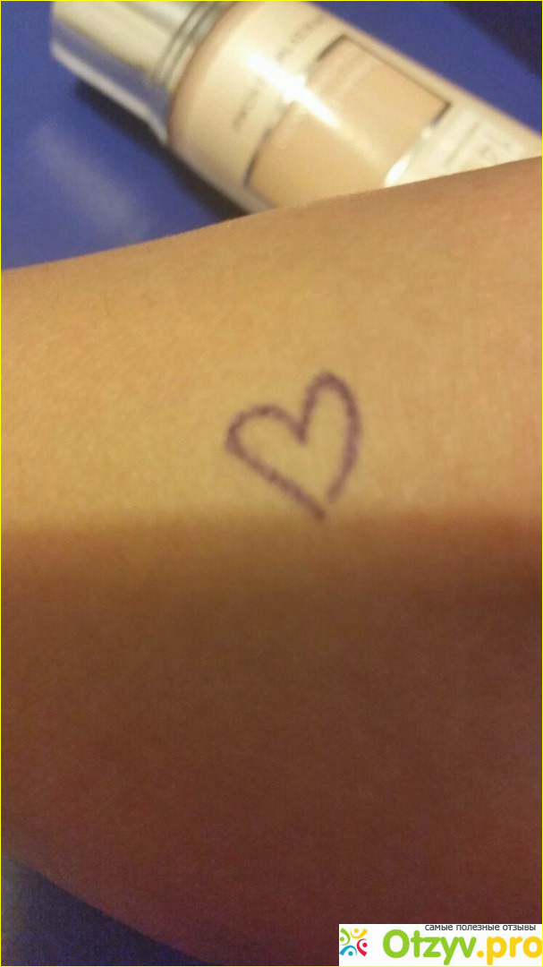 В доказательство того, что тональный крем Аффинитон плохо скрывает недостатки я слегонца нарисовала на своей жирненькой лодыжке сердечко,