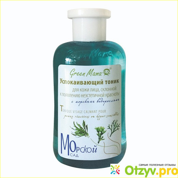 У Green Mama есть отдельная серия косметики - Морской сад. В нее как раз входит успокаивающий тонки для лица с морскими водорослями. Очень привлекательно выглядит этикетка на упаковке, которая обещает, что тоник будет не только успокаивать, но и поможет избавиться от неэстетичной красноты на лице.