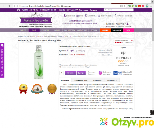 Для такой цели я использую многофункциональное средство по уходу за лицом, которое называется тоник S,Claa Esthe Aloeca Therapy Skin Enprani. Этот тоник я покупала за 850 рублей. А дорого так потому, что это элитная и специализированная версия.
