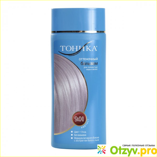 Бальзам «Тоника» «Аметист» приятно пахнет, хорошо кондиционирует волосы, после него даже перхоть пропала, зуд и шелушение. Сама жидкость насыщенного черничного цвета, но волосы не станут от этого сиреневыми. Масса не пенится, но при разбавлении водой или шампунем становится густо-фиолетовой. С ним пропадает желтизна, волосы уходят в приятный серебристый тон, более ухоженные и плотные. Крашусь в старой домашней одежде. При попадании на материал практически не реально отмыть, в том числе и ванная. Нравятся многие тоны, попробовала красное дерево, янтарь, шоколадный, светлый русый. Все хорошего качества.