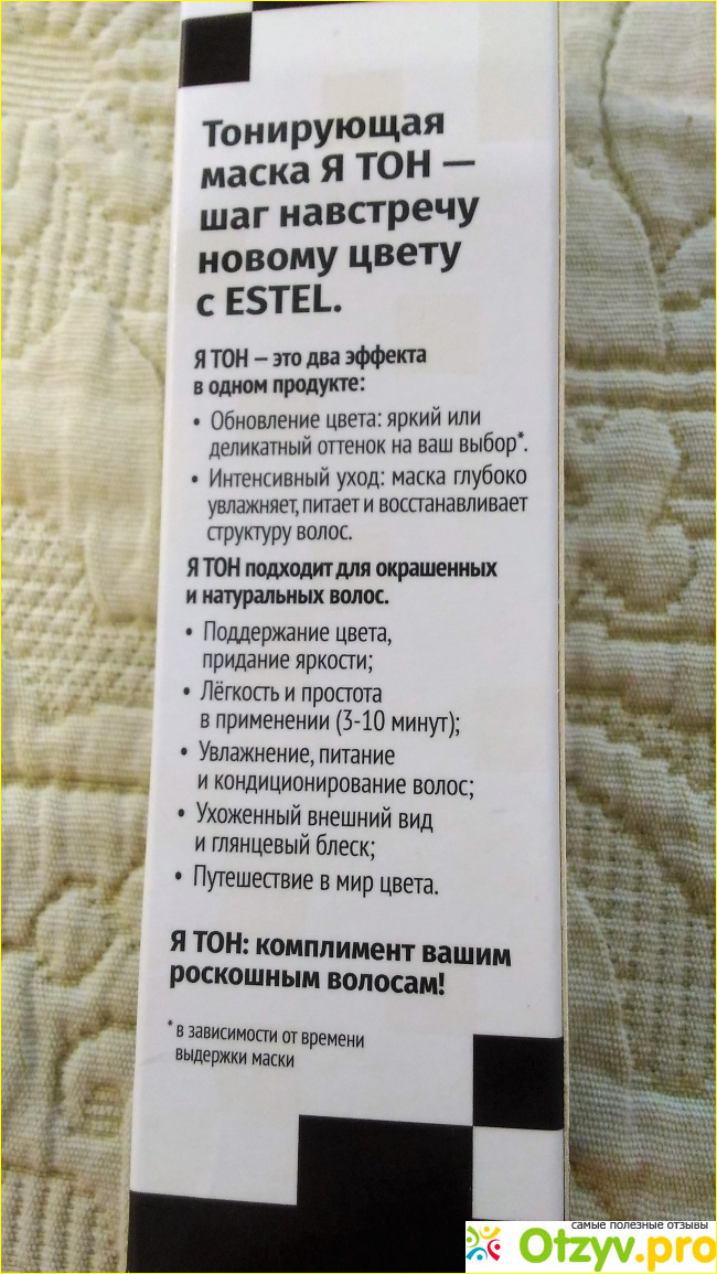 Вся информация о Тонирующей маске для волос Estel "Я тон" достоверная. Это на самом деле "два в одном". Маска одновременно ухаживает за волосами и тонирует их. Не нужен ухаживающий бальзам, волосы после нее оживают, становятся мягкими, гладкими, с приятным блеском. Не каждый бальзам дает такой эффект.