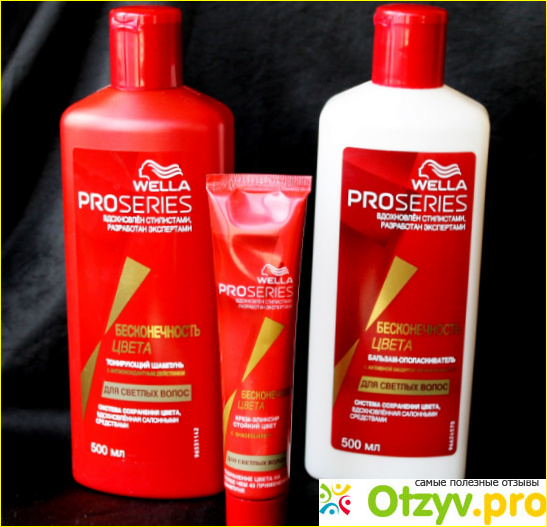 К сожалению, в недостатках заявленное свойство - шампунь не тонирует волосы. Wella PROSERIES БЕСКОНЕЧНОСТЬ ЦВЕТА для светлых волос, как это не прискорбно - обычный шампунь. Возможно, чуть более интересный с точки зрения ухаживающих возмжоностей, тем не менее. На слабых волосах может показать себя не с очень хорошей стороны - подсушивает кончики и жирнит корни. Может утяжелять прическу.