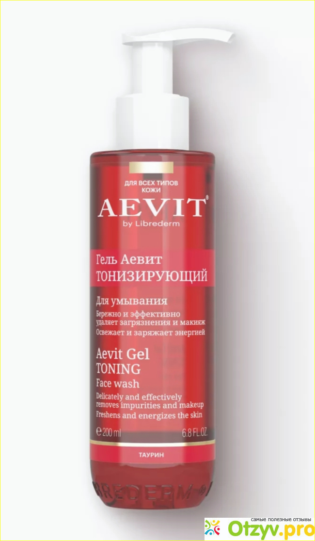 Флакон 200 мл с дозатором, ярко красного цвета, как вся линейка AEVIT.