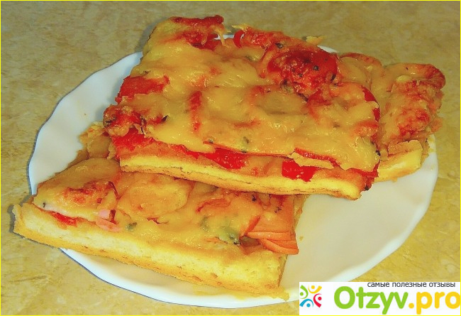 Пиццу ставим снова в духовку, и ожидаем, когда подрумянится сверху. Минут через 15-20 пицца готова. Даем остыть и нарезаем: