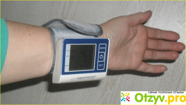 Прибор требует довольно точного расположения на запястье левой руки. То есть экраном к себе и отступая от кисти на 1.5-2 см.
