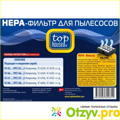 HEPA-фильтр TOP HOUSE изготовлен в Германии из специального материала по современной технологии с учетом рекомендаций ведущих производителей пылесосов.