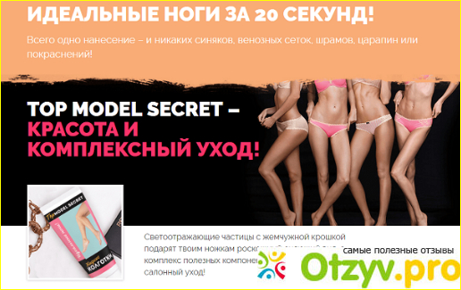 Топ Модел Секрет просты в применении. Наносим крем на чистые, сухие ноги, равномерно распределив по всей поверхности ног. Выжидаем 20 секунд, чтобы крем впитался и создался эффект защитной сеточки.