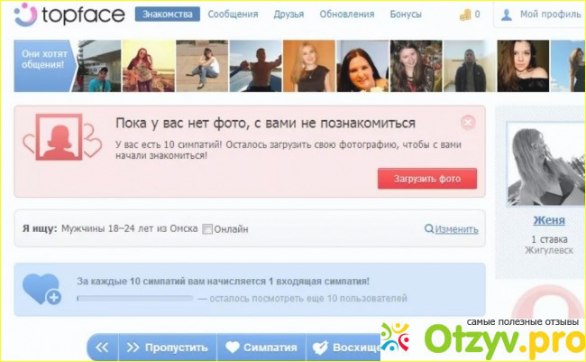 Светлана. Пока ты молод всегда интересно заводить новые знакомства и новых друзей. Это-то меня и с подвигло зарегистрироваться на сайте Топфейс. Естественная не преследовала своей целью завести мужа, серьёзные отношения меня также не прельщали, меня просто заинтересовал этот сайт, тем более он был международным, и я хотела познакомиться с новыми людьми со всего мира. Поначалу всё выглядело достойно, красивое оформление, вроде бы всё просто, заполнила анкету и начинай загружать свои фотографии сколько душе угодно, никаких ограничений по количеству нет, а далее только смотри как люди их оценивают. Можно отмечать параметры и выбирать людей с которым бы хотела общаться, только размести фотографии, и ты будешь купаться в море комплиментов и симпатий, но имеется одно большое "НО"! За любую мелочь с тебя постоянно просят деньги! Даже если тебе лично приходит сообщение от VIP-человека, прочитать его невозможно, а это уже вообще полный нонсенс! Получается какое-то разделение на касты, VIPы переписываться с VIPами безVIPы с безVIPами! Получается какая-то полная чушь и в чём тогда смысл непонятно!? Из-за этих ограничений не посмотришь кто к тебе заходил, сообщения не прочитаешь, одним словом полная бессмыслица! Потом мне этот VIP дали, непонятно за что, возможно в рекламных целях, чтобы я прочувствовала его прелести. Но никакого преимущества мне это по-прежнему не дало, то могу прочитать сообщение от тонет. К тому же люди там сидят неадекватные, возможно я такая невезучая, но постоянно попадались очень наглые субъекты, с повышенной навязчивостью и липучестью. Так что посидев там около месяца я его забросила, он меня отводил своим дурацким функционалом. Думаю, как-нибудь зайти да удалить свою страницу полностью. Знакомиться с людьми всё же лучше в реальной жизни, так ты почувствуешь гораздо меньше негатива и быстро поймешь твой это человек или нет)!