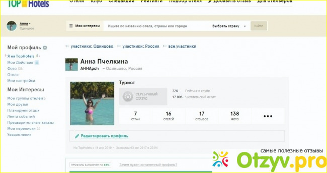 Я зарегистрировалась на сайте, чтобы иметь возможность оставлять свои отзывы и комментарии. Я обычно выбираю отзывы с фотографиями, чтобы убедиться, что автор действительно посетил отель, о котором пишет. Я также обращаю внимание на профиль автора, и я склонна доверять отзывам тех, кто имеет заполненный профиль и написал несколько отзывов на сайте.