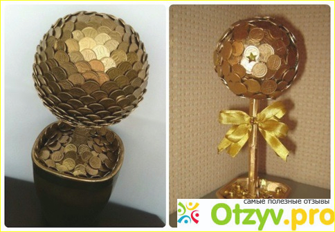 Почему я его называю деревом изобилия ? Посмотрите на его верхушку – она ведь полностью заполнена, то есть урожая много! А если еще оформить его монетками, таким образом Вы пожелаете человеку достатка и изобилия!