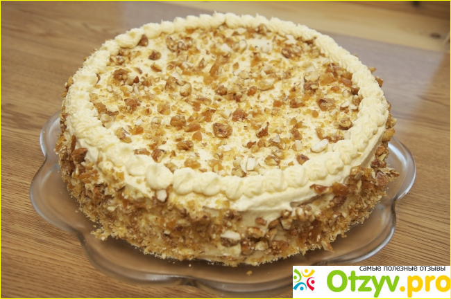 Украсьте торт по своему усмотрению. Можно орехами или тертым шоколадом.