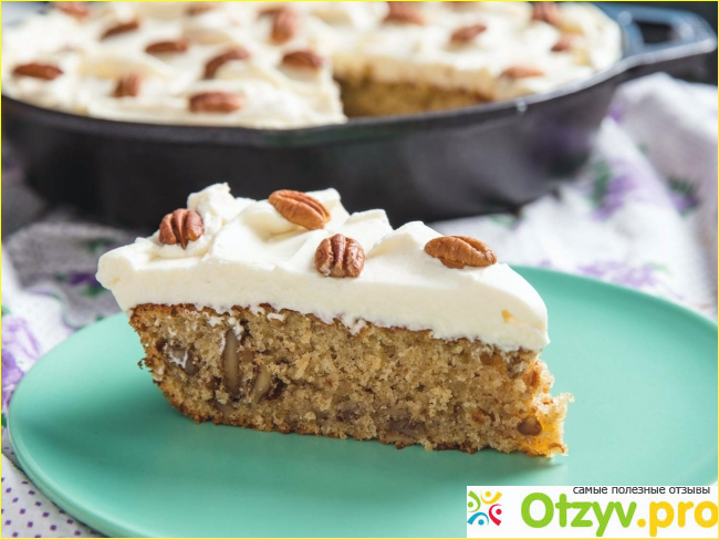 Чтобы закончить: сверху торт с около 2 чашек вашего любимого сливочного сыра глазурью или сливочным кремом, а также россыпью поджаренных орехов пекан. Наслаждайтесь немедленно или оставьте при комнатной температуре до готовности к подаче, до 24 часов при прохладной комнатной температуре. После резки, оберните оставшиеся ломтики индивидуально и храните при прохладной комнатной температуре до 2 дней.
