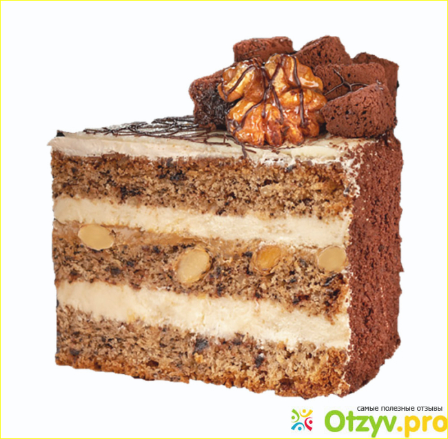 Коржи пропитаны очень щедро, практически течёт из них. Самая нижняя прослойка сгущенка с орехами, вкусная. Белая прослойка в центре размером сантиметра два, имеет странный молочный вкус как ванильное мороженое.