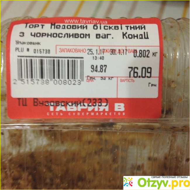 Торт Медовый бисквитный с черносливом собственного производства сети супермаркетов Таврия В я не рекомендую. Такое лакомство вряд ли кому то понравится.