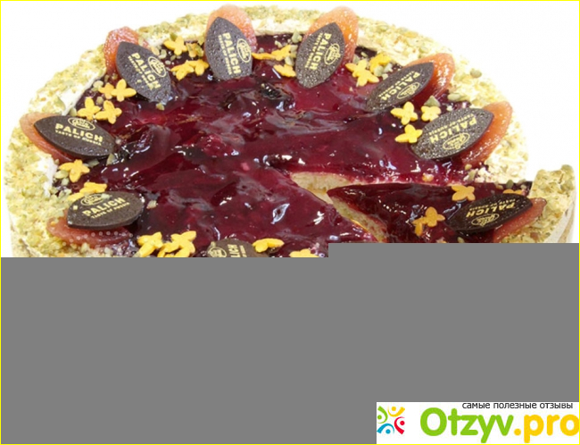 Есть еще один, где поверхность вся покрыта вишневым желе с кусочками ягоды.