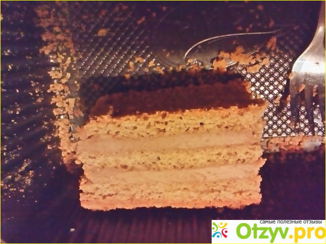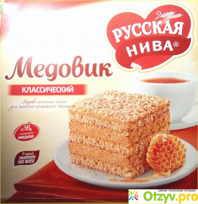 Тем не менее этот покупной торт имеет и минусы, и плюсы. Во-первых, мед в нем действительно имеется - это хорошо, но не так уж его и много, чтобы называть торт "Медовик", не все это заметят, но в торте больше сахара и молокосодержащего сгущенного продукта с сахаром (заметьте, что не сгущенного молока, а именно молокосодержащего, т. е. и молока не так уж много) и сахара, которого очень-очень много, что ощущается, и неплохо перебивает вкус меда (неудивительно, ведь "мед" указан где-то в конце списка состава). Тортика действительно на всю семью хватит, даже если семья большая (это плюс).