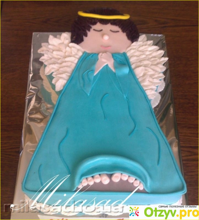 Раскатать в пласт оставшуюся белую мастику, вырезать крылья. Вставить зубочистки и оставить их при комнатной температуре, чтобы затвердели. Затем вставить в торт.