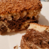 Торт высокий. Тесто белое и черное вперемешку. Центр пропитанный очень хорошо, при том оно не мокрое и не липкое, сыпучее, немного крошится. Верх посыпан мелкой крошкой. Края более сухие.