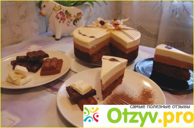Пришли к нам гости и в качестве небольшого презента на десерт подарили тортик под названием "Три шоколада", кто производитель я уже и не помню, но упакован был он очень красиво, да и внутри сам торт выглядел очень аппетитно, имел приятный аромат и его так и хотелось попробовать.