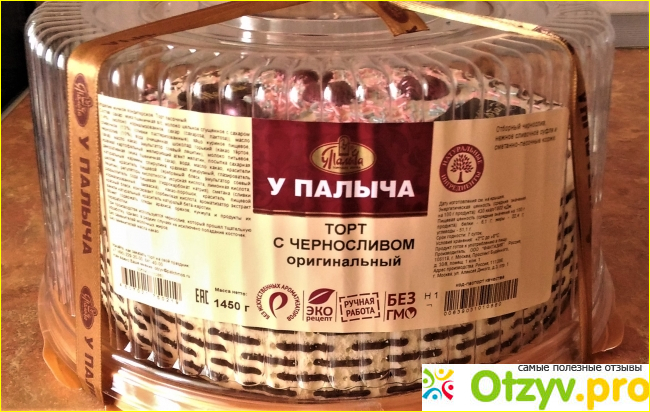 Объект отзыва я приобретала впервые. Раньше его не пробовала. Купила по совету продавца. Мне нужен был торт с большим весом или два обычным. Продавец посоветовал мне торт У Палыча "С черносливом". Сказал, что торт с оригинальным вкусом. Потом я обратила внимание на упаковке рядом с названием то же отмечено. Вес у торта приличный, почти полтора килограмма. Меня как раз устраивал.