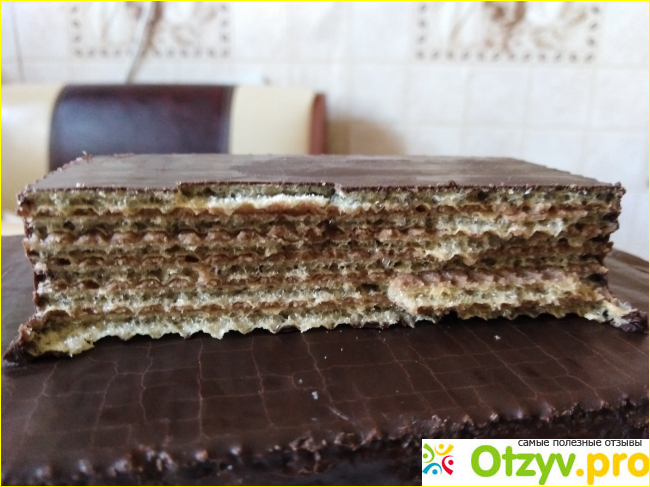 По своей сути торт, это можно сказать обычные вафли с прослойкой, политые шоколадом, а иногда поверх шоколада добавлен тертый орешек.