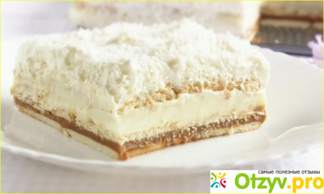 Разделяет его на половинки. Потом слой крема из взбитых сливок, сахара много не надо, так как зефир и так сладкий. Сверху украшаем растопленным шоколадом.