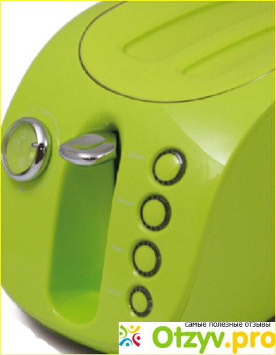 У него также как и у многих тостеров сверху есть два стандартных отсека, на пару кусков хлебушка.