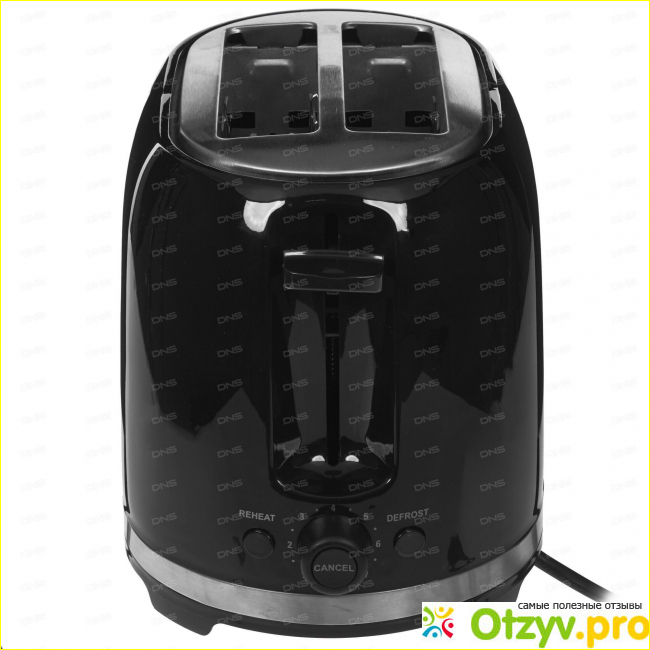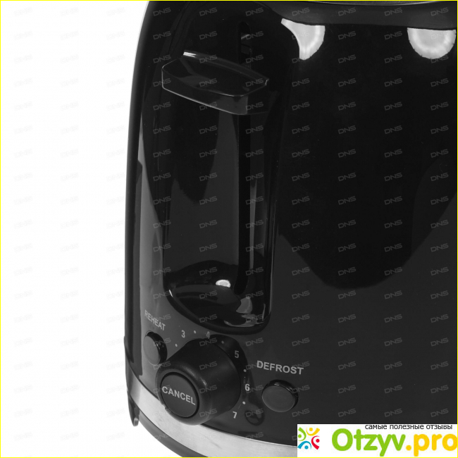 У нашего героя VES T-100-B количество тостов два, количество отделений также два. Количество степеней обжарки семь, так что вы можете самостоятельно варьировать степень прожарки, цвет, текстуру хлеба. Есть функция подогрева, функция размораживания и автоматическое центрирование тостов. Что все это означает – расскажу подробнее далее.
