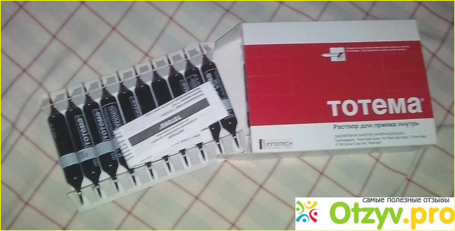 Схема приема раствора Тотема индивидуальна и может составлять от одной ампулы в день до четырех. Содержимое ампулы разводят в воде и принимают перед едой.