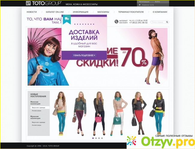 Если нет желания тратить время на поездки по магазинам, можно легко воспользоваться сервисом покупкой в интернет-магазине. В котором представленные товары для всей семьи. Красивое оформление сайта и удобный функционал пр поиске нужной вещи не составит трудностей. Для каждого покупателя товары представленные в отдельных категориях. Просто заходите на сайт и выбираете свою категорию одежды или аксессуаров и выбираете понравившуюся вещь. Есть коллекции по всем сезонам года. Качественные изображения передают все нюансы вещи, а внизу под картинкой указанна стоимость. Каждая модель имеет подробное описание. Выбираете нужный цвет и свой размер. В помощь покупателям создана Таблица размеров, где вы сможете выбрать свой без проблем. Если же вы не можете разобраться или не уверенные в выбранном товаре, то онлайн-менеджер поможет вам, нужно лишь только написать в форме "Задать вопрос". И вы получите всю интересующую информацию о выбранном товаре и прочих услугах. Заказывая модель вы сможете ее примерить в любом магазине, куда вам удобнее подъехать. Если же в вашем городе нет магазина TOTOGROUP, у них предусмотрена курьерская доставка с возможностью примерки. Крайне удобно как по мне. В категории Sale можно присмотреть себе интересную вещь на действующий сезон , по очень выгодной цене. Как правило размер скидки составляет 50% от первоначальной стоимости. Если знаете что хотите, но перелистывать десятки страниц с товарами нет желания и времени, то стоит воспользоваться фильтрами. Забиваете нужные данные : размер, цвет, материал вещи, сезон и вам система покажет все подходящие товары под ваше описание.