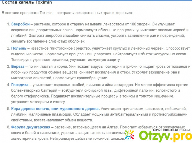 Когда я получила препарат, как технолог, решила изучить состав, на упаковке гласит, что он содержит сорок семь натуральных компонентов (полынь, ферула джунгарская, осиновая кора, пижма, береза и т. д.), каждый дополняет друг друга и усиливает действие предыдущего.