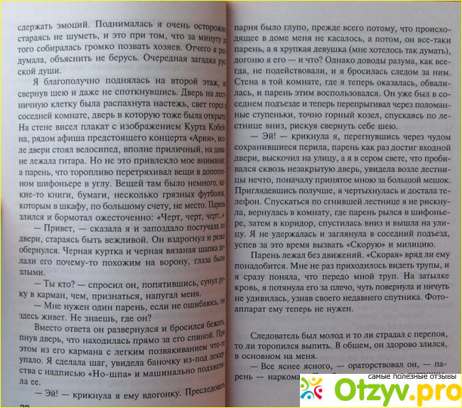 Привлекает меня и постоянные моменты от которых захватывает дух, интрига присутствующая на протяжении всего детектива и тайна, которая открывается только в конце книги.