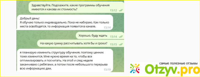 Я написала ему сообщение и принялась ждать. Времени на ожидание ушло недолго и вскоре мне пришел ответ. Да, индивидуальное обучение действительно оказалось платным, такую услугу автор канала оказывает тому, что это пожелает.