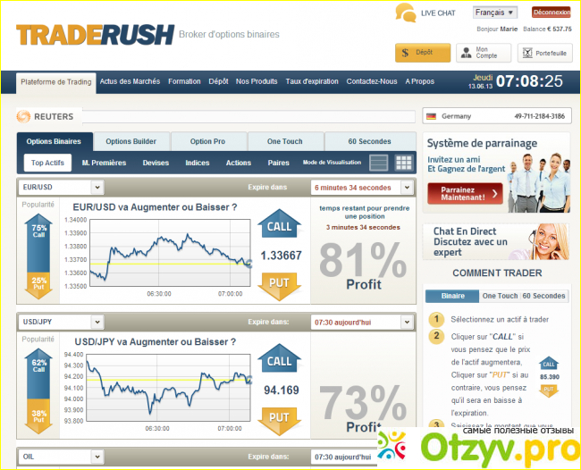Демо-счет Trade Rush будет отражать их реальные деньги счета. Вам будет разрешено торговать в режиме реального времени, используя точно такое же программное обеспечение, которое вы будете использовать, если бы вы также торговали реальными деньгами. Важно помнить, что здесь, как только вы получите виртуальный счет, ваша цель будет состоять в том, чтобы не узнать сложную стратегию, а скорее, чтобы изучить все входы и выходы, как работает платформа и хитросплетения программного обеспечения, на которое вы должны положиться. Двоичные торговли опционами могут быть жестким, сами по себе, но когда у вас возникают проблемы при переходе на веб-сайт, вы можете обнаружить, что торговля занимает второстепенную роль по сравнению с попытками использовать платформу. Этой проблемы можно полностью избежать, если вы практикуете с демо-счетом, пока вы не будете иметь власть над основными функциями программного обеспечения.