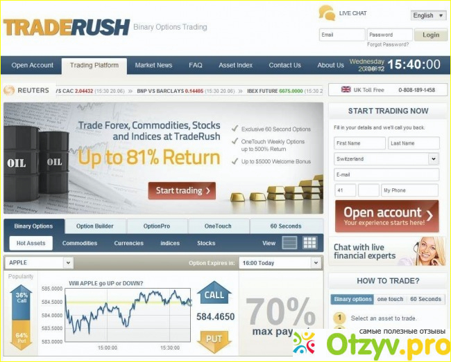 Торговля бинарными опционами с TradeRush демо-счета очень легкая. После создания и пополнения своего счета запрашиваемым образом, вам нужно будет связаться с членом их команды поддержки клиентов с помощью функции чата. Человек, которому вы говорите, будет в состоянии установить вас с демо торговым счетом. Это особенность, которую вы можете получить с помощью учетной записи Trade Rush, но они хотят, чтобы полностью убедиться, что вы собираетесь вести демо-торговлю серьезно, прежде чем они расходуют свои ресурсы на вас, чтобы установить вас с одним из пользователей. Этот брокер также уникален в том, что он предлагает нетрадиционные пары активов. Например, если вы хотите что-то вроде Apple, торговать против Amazon, вы можете торговать этими активами в сравнении друг с другом.