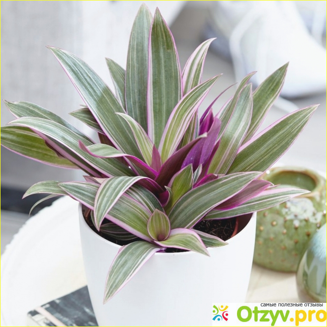 Когда растение уже можно было опознать, я нашла в интернете что это традесканция Рео или лодочка Моисея. Это название связано с тем, что цветочки растения имеют форму лодочек и внутри раскрываются белые цветочки.