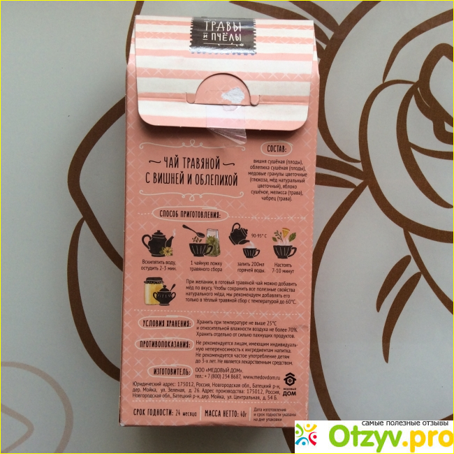 На коробочке производитель оставил массу необходимой информации, которая так или иначе пригодится потребителям. В число этой информации входит состав, который отвечает всем экологическим. натуральным требованиям лично моим, так как в нём только чай и натуральные травы, собранные в экологически чистых районах страны, также нужно внимательно ознакомиться со способом заваривания травяного чайного напитка, помимо этого есть информация о правилах хранения, срок годности и контактная информация о самом производителе.