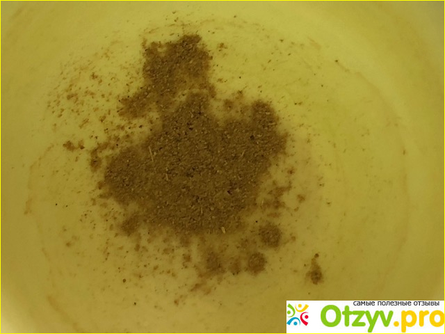 Это порошок коричневато-зеленоватого цвета, представляющий из себя не очень мелко размолотые высушенные травы.